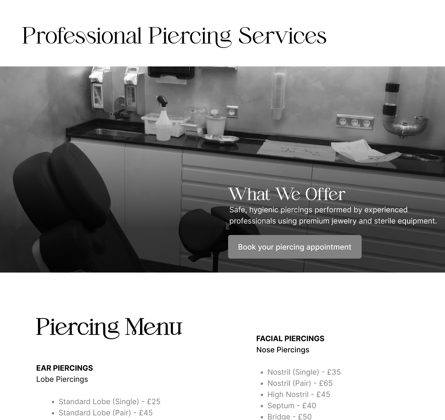 - Website Design - Full responsive site including booking system, artist profiles, gallery, and services pages