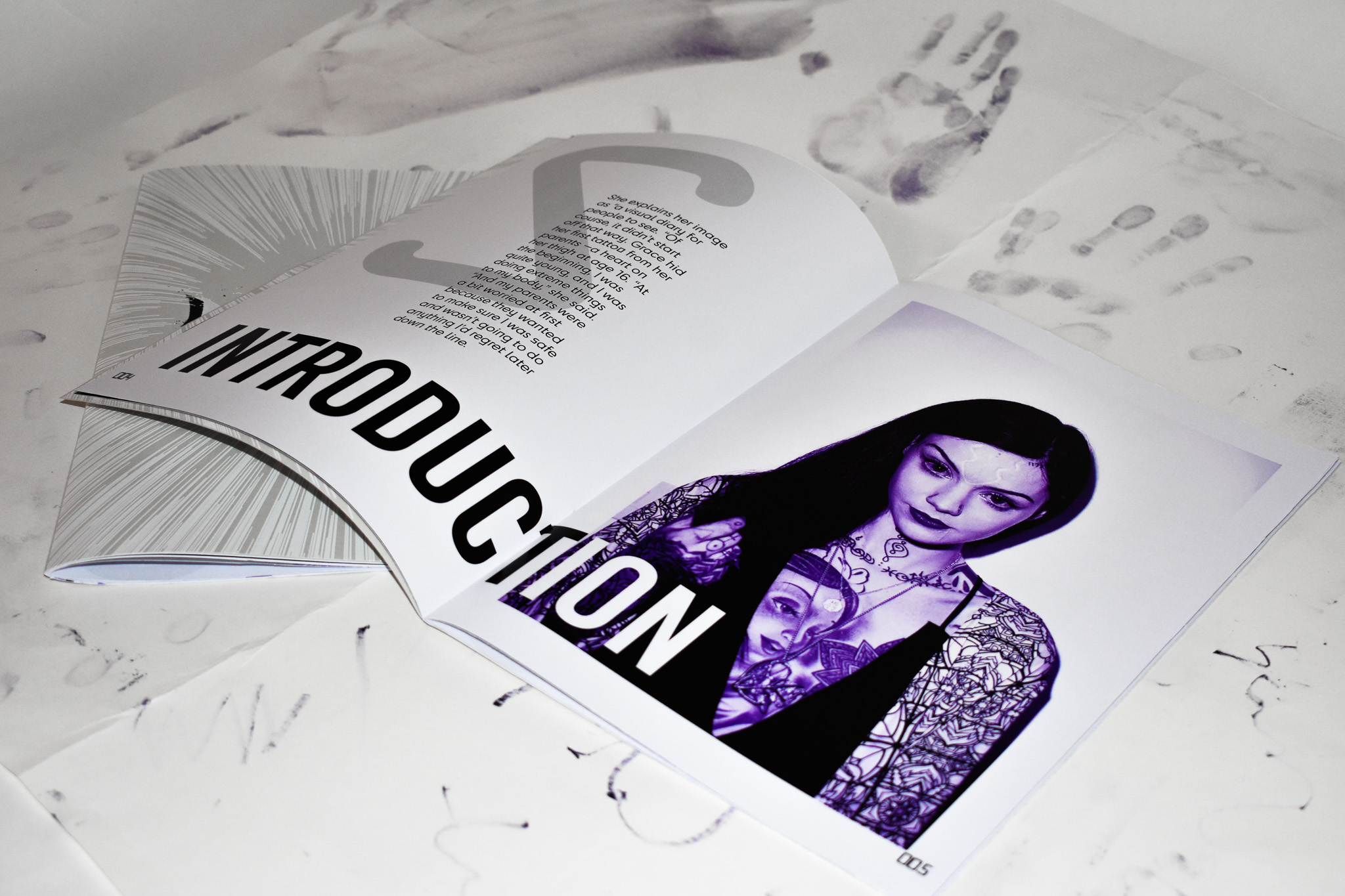 First-year university project to design, print, and hand-bind a booklet exploring either an aspect of personal identity or someone who inspires us. I chose to create a tribute to Grace Neutral, the tattoo artist and host of Viceland's "Needles & Pins" documentary series, whose work I've followed since her first appearance on the show.Creative Approach